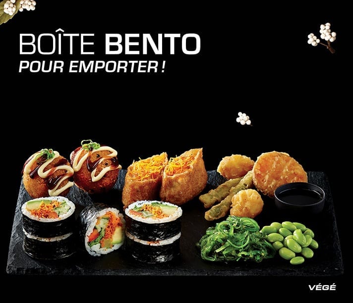 • Notre boîte Végé offre un choix de produits végétarien varié ainsi que notre nouvelle entrée de légumes tempura