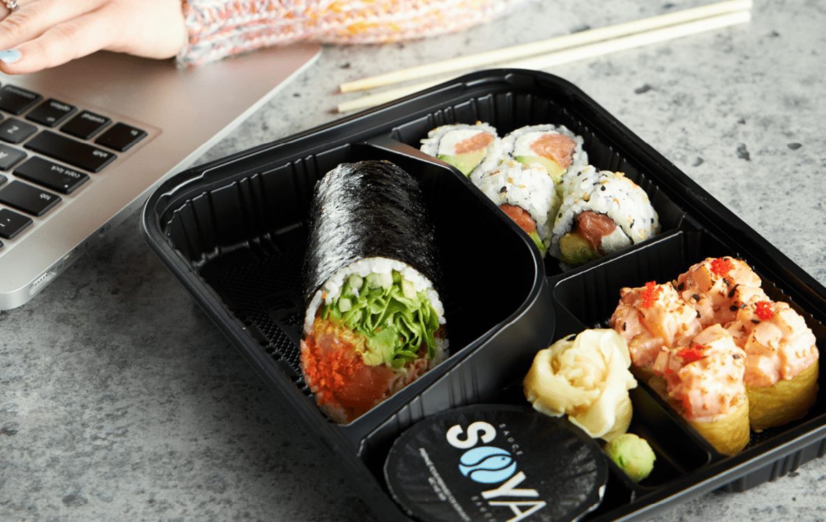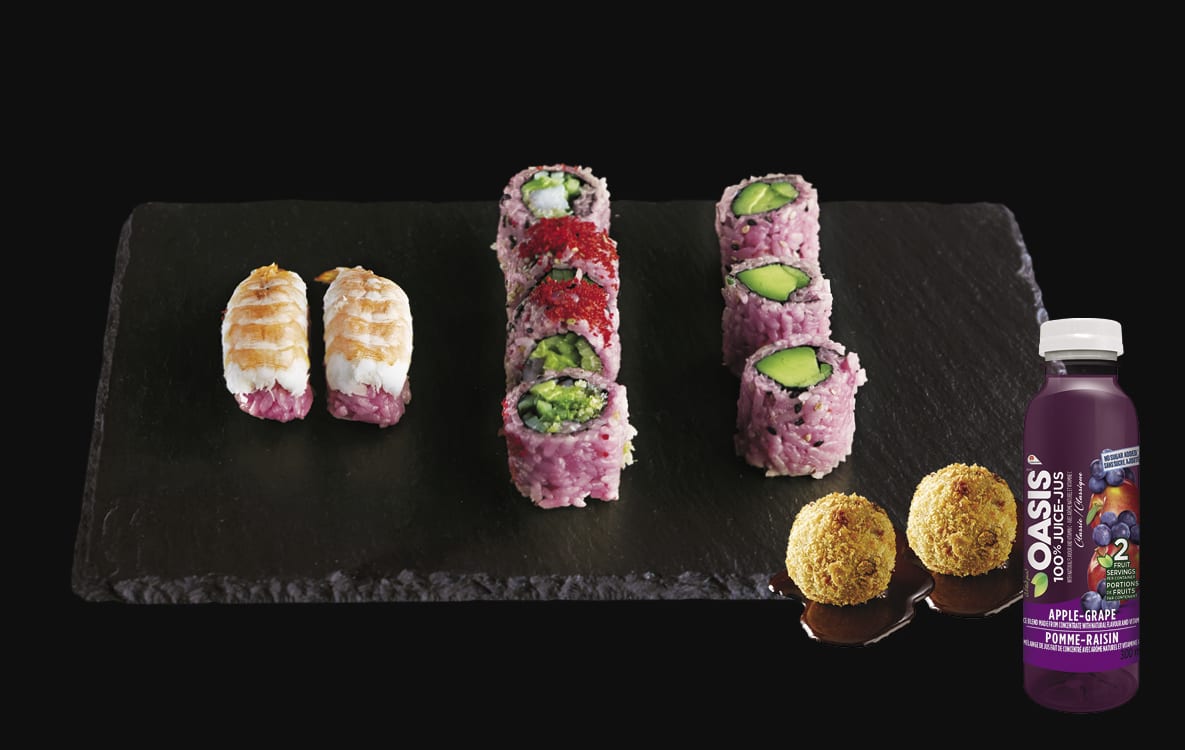 In addition, your kids can choose between 2 choco-banana bombs (a sure hit!), Oasis juice or Sushi Shop water.