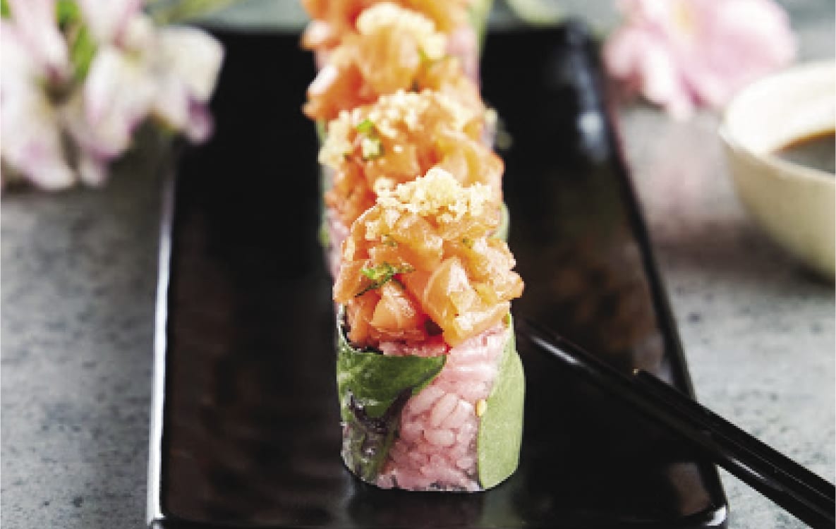 Sunkiss Maki: The newest addition to our menu! Just in time for the summer season, its two salmon flavours and lemony touch will transport you straight to warmer days!